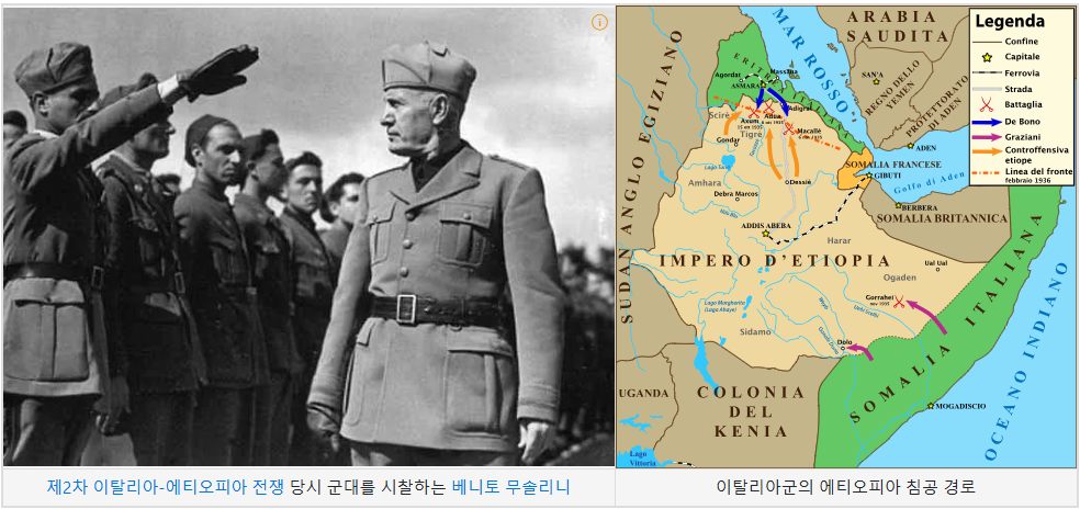 | 이탈리아 | 에티오피아 침공, 제국주의 침략 본격화 |