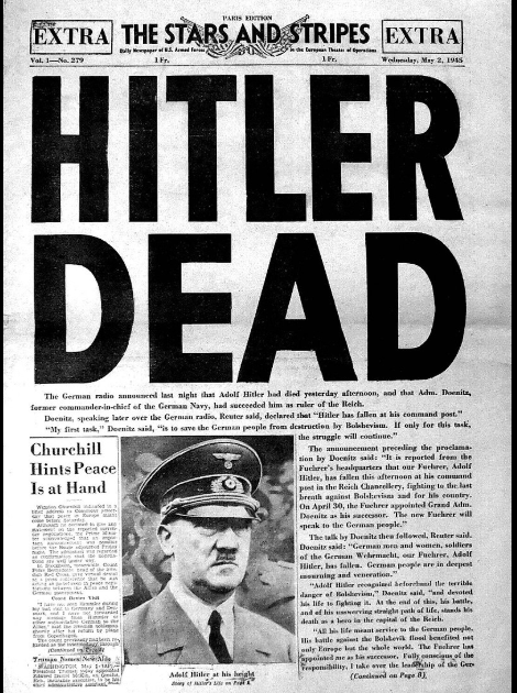 - 4월 30일: 지하 벙커에서 에바와 함께 자살