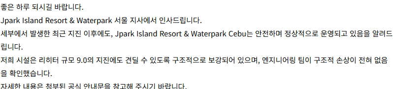저도 세부여행을 준비하고 있는데, 이런일이 발생해서 커뮤니티를 통해 확인한 사항을 공유합니다.